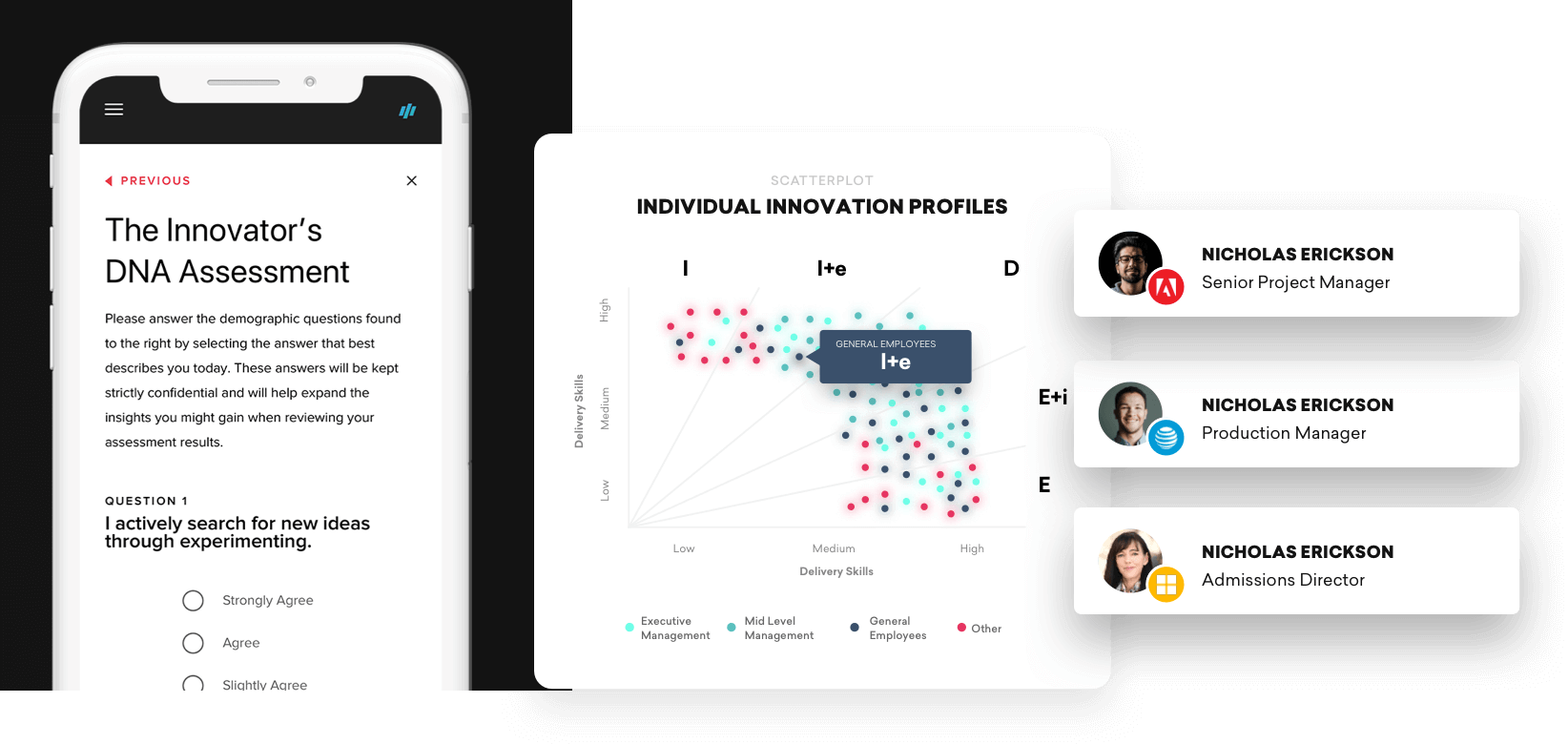 All highly innovative organizations exhibit best-in-class practices across three pillars: people, process, and philosophies. The Innovation Diagnostic measures your organization across all three constructs and provides you with an in-depth feedback report and recommended next steps.