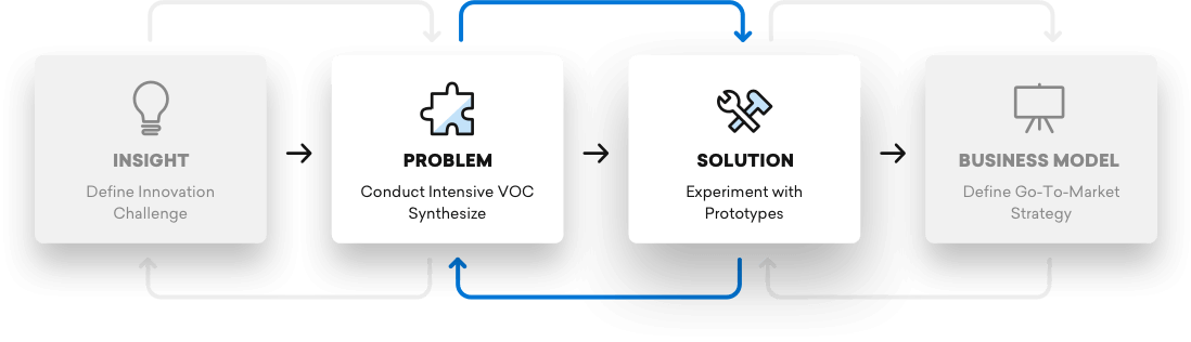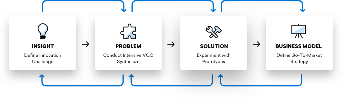 Journeys are an intensive application of the Innovator's Method to highly strategic, disruptive opportunities. Dedicated teams will spend 4-5 months in deep immersion with hundreds of customer interactions, interviewing dozens of trend and technology experts, experimenting and prototyping on multiple solutions, and developing innovative go-to-market strategies.